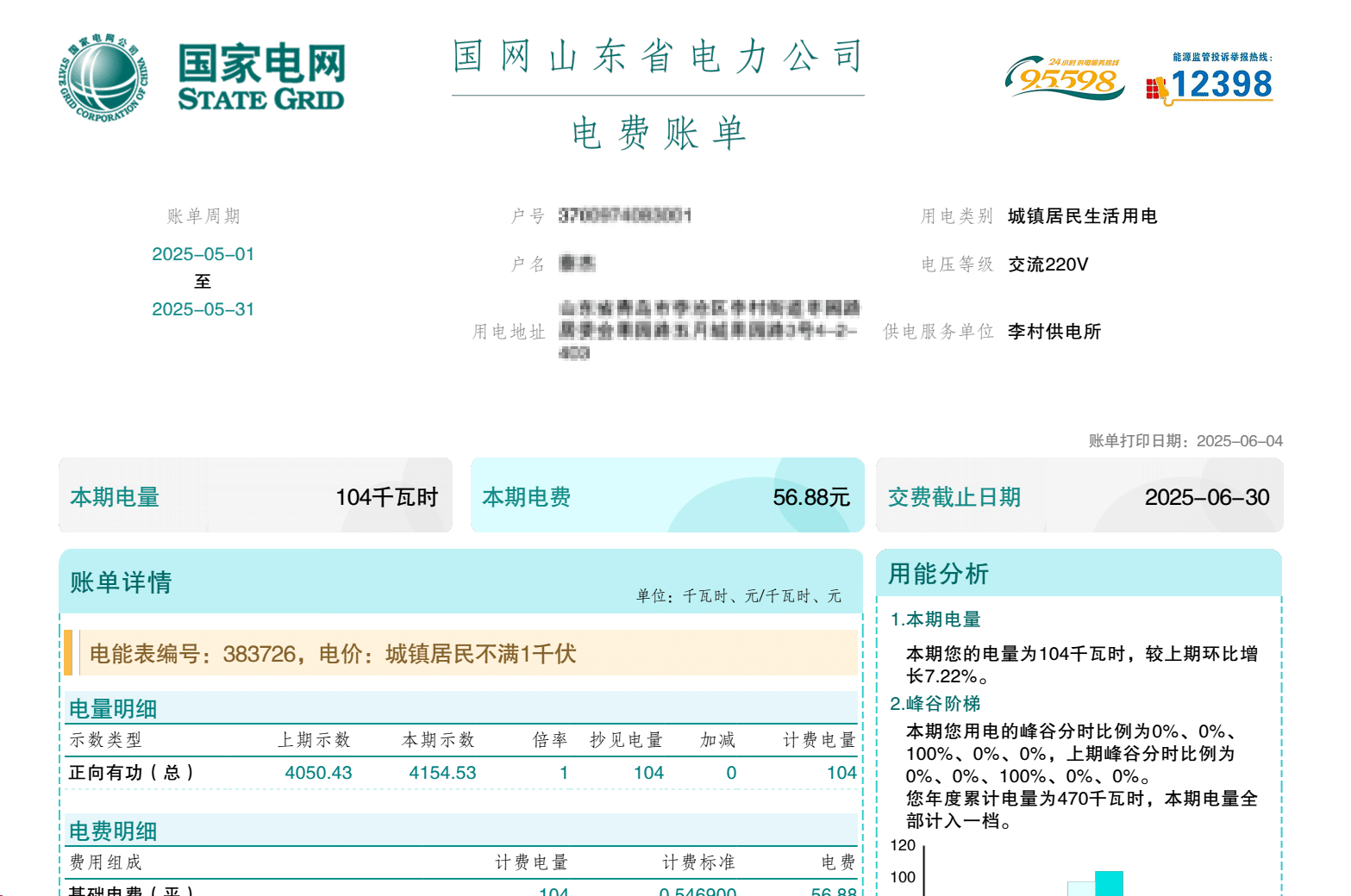 - 首页点击【电费账单】→选择最近3个月内的账单