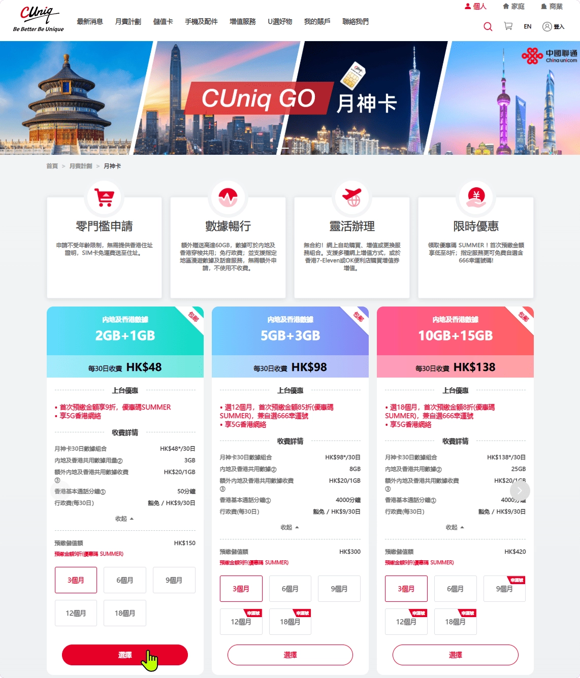 - 访问官方渠道:用户需通过中国联通(香港)CUniq 的 官方网站 进行购买。