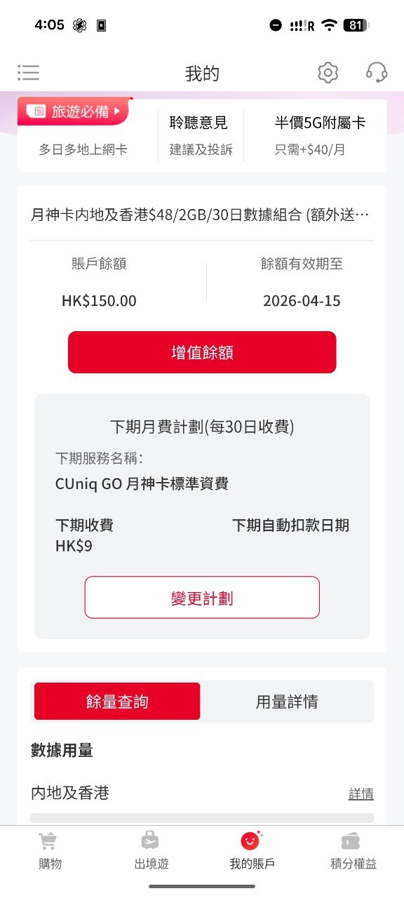 - 保号套餐:月神卡的一大优势是其低成本的保号方案。在初始套餐到期后,用户可以选择将月费降低至 9HKD 来保留香港和内地双号。具体操作步骤如下: