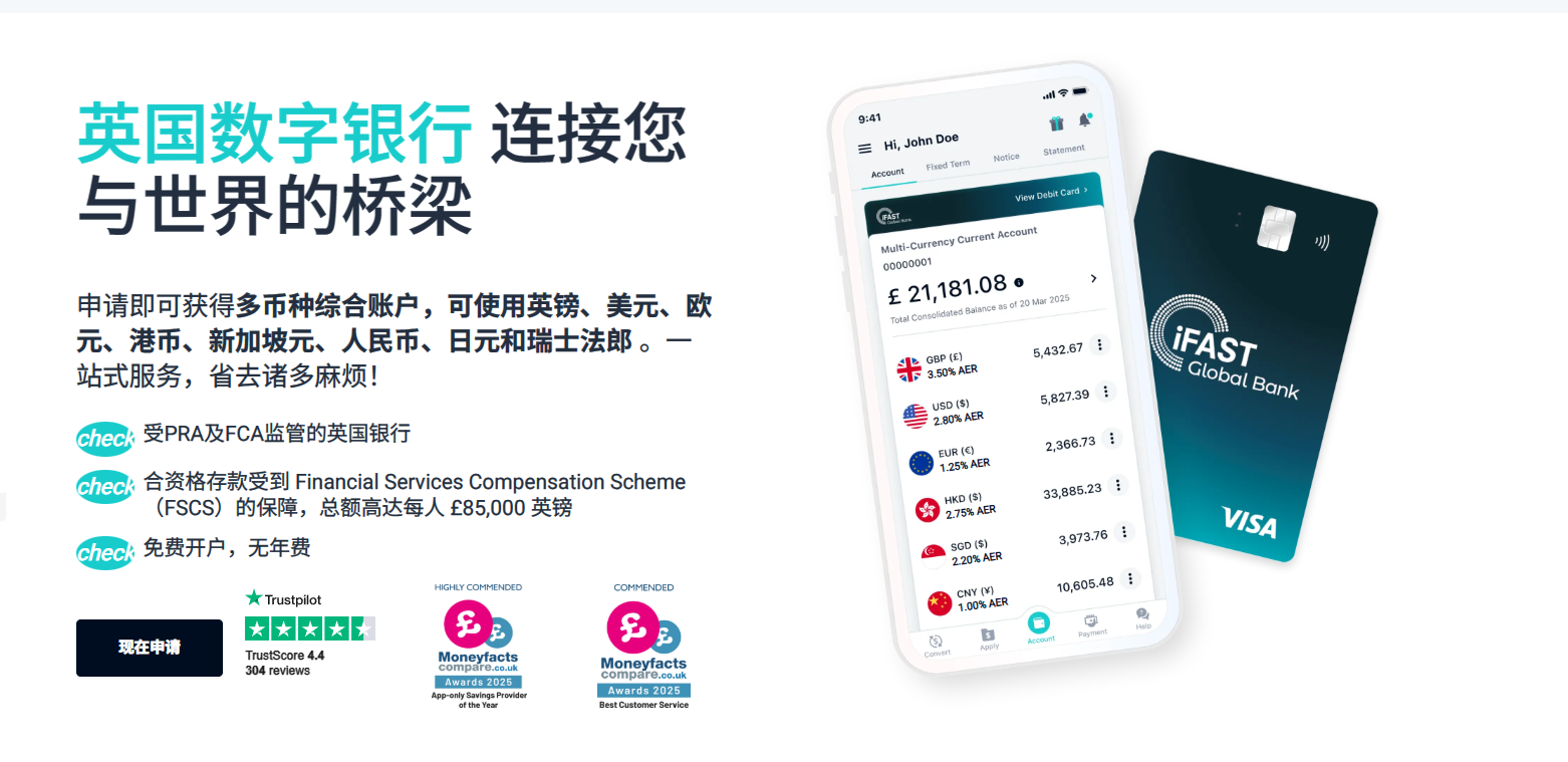 『iFast』英国 iFAST Global Bank 数字银行开户攻略:支持全套中国资料免费开户