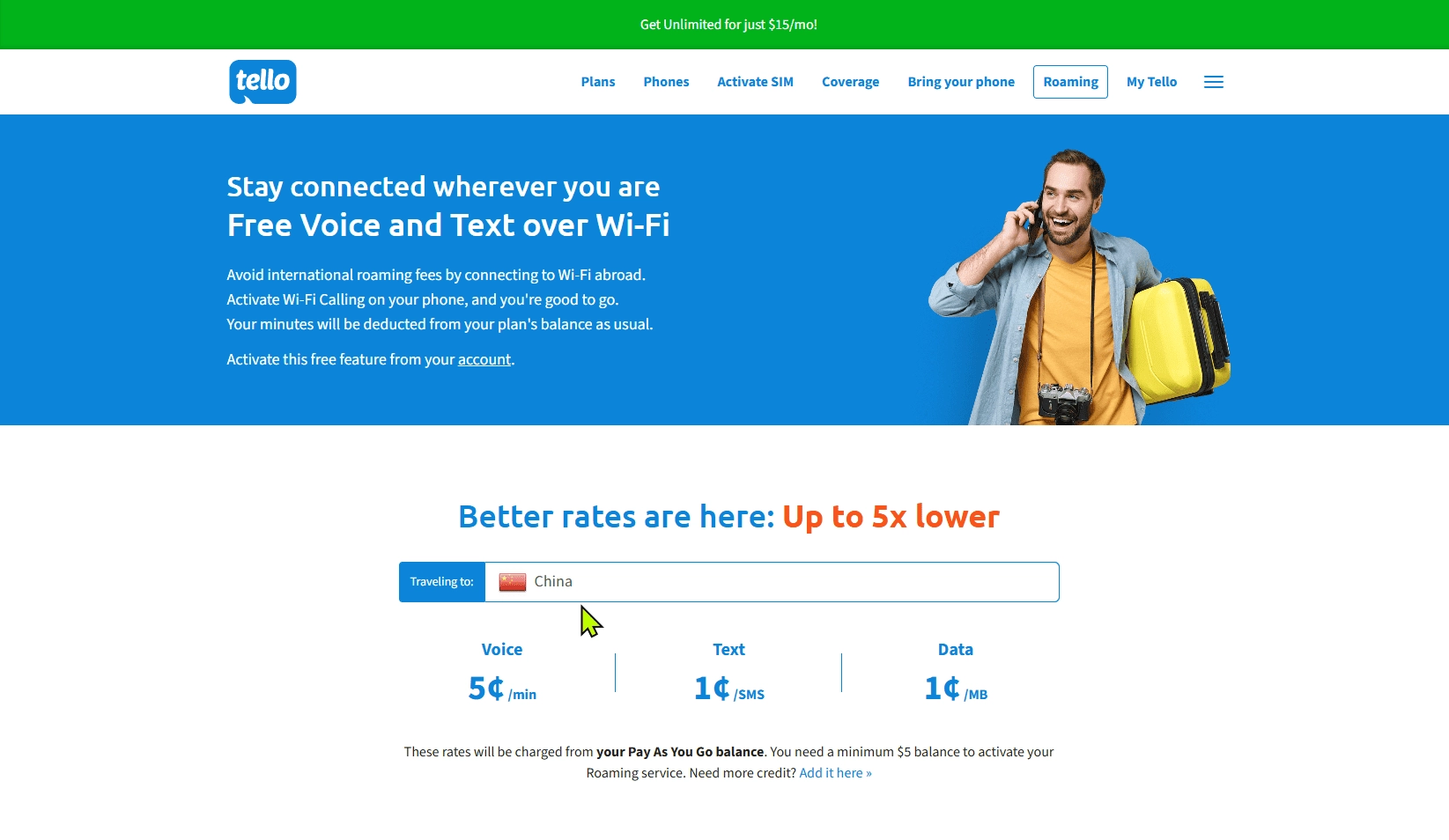 超低资费:最低 $5/月起,可自由组合语音、数据和无限短信