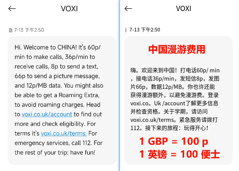 - 中国发短信成本仅为 0.08 GBP ≈ 0.8 RMB/条,在 WiFi Calling 下仅为 0.01 GBP 约等于一毛钱!