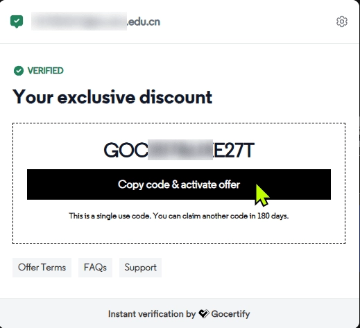 📍 2.填写 Edu 邮箱,验证通过后可获得以 GOC 开头的抵扣优惠码