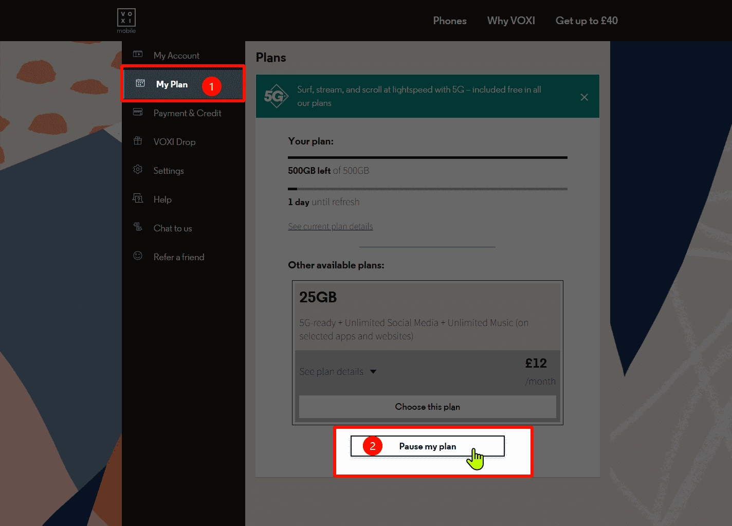 📍 9.取消付费套餐:在临近 30 天时,登录 VOXI 后台—— My Plan —— 拉到底部点击 Pause my plan,取消计划,避免被扣订阅费。