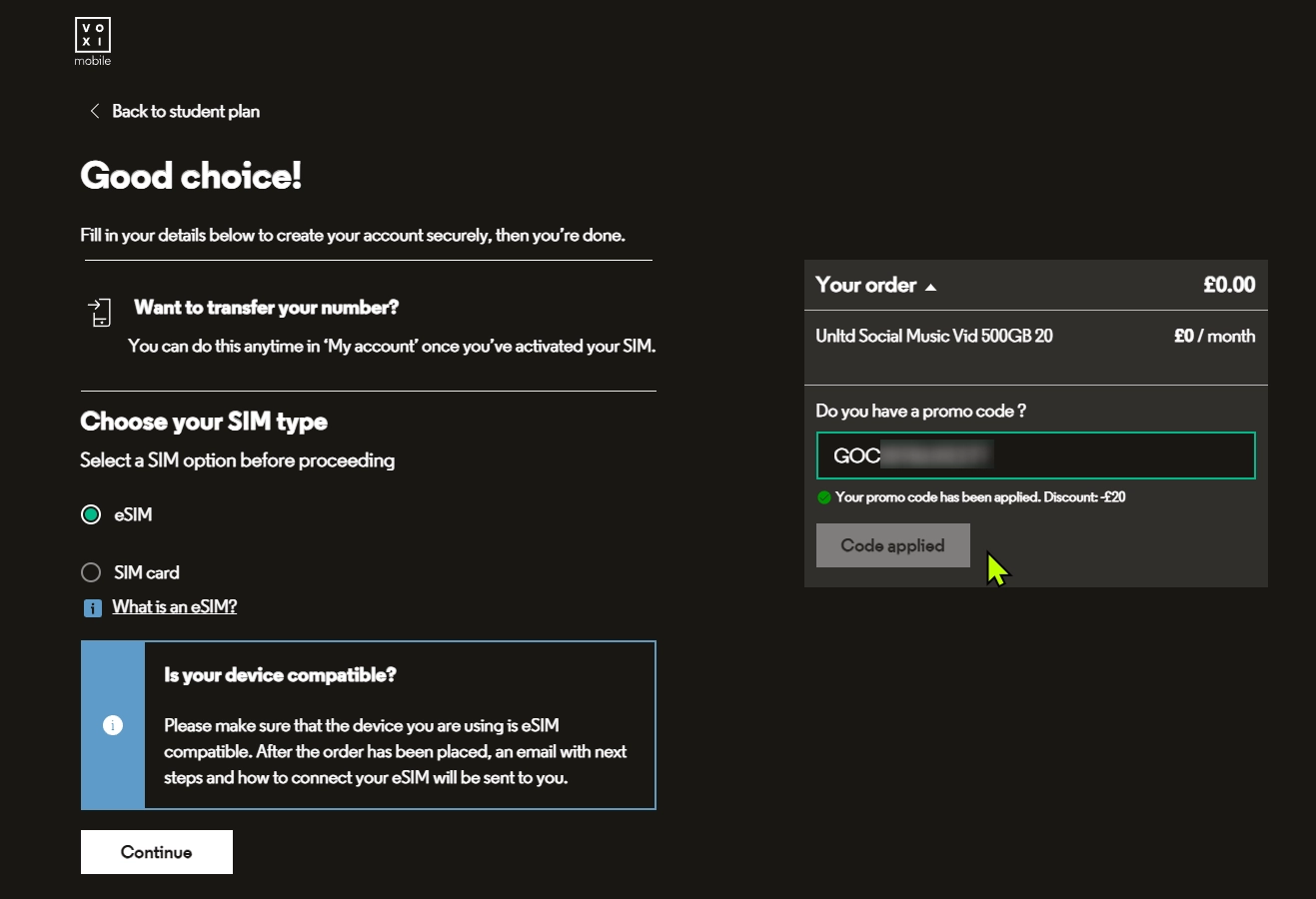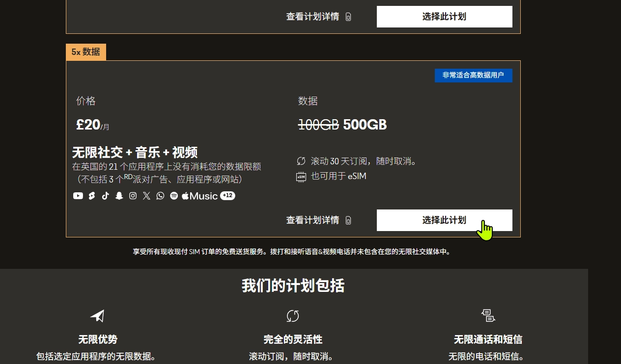 📍 1.访问主链接开始申请:VOXI学生计划,直接选最后一个 £20 的套餐